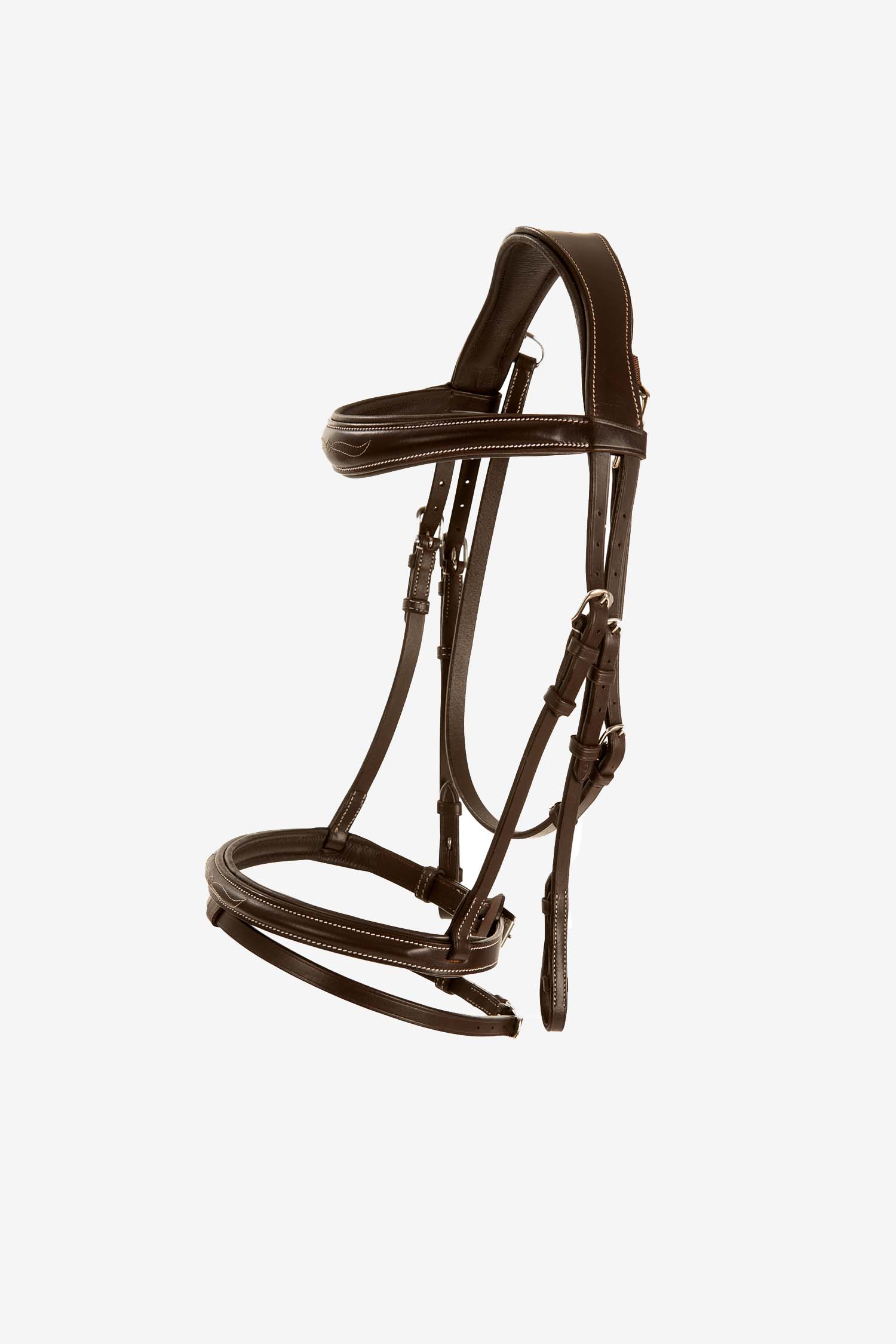 Aachen hoofdstel van zacht leer van Lippo, met decoratief stiksel. Het hoofdstel is anatomisch gevormd bij het kopstuk om de vorm van het paard rond de oren te volgen.