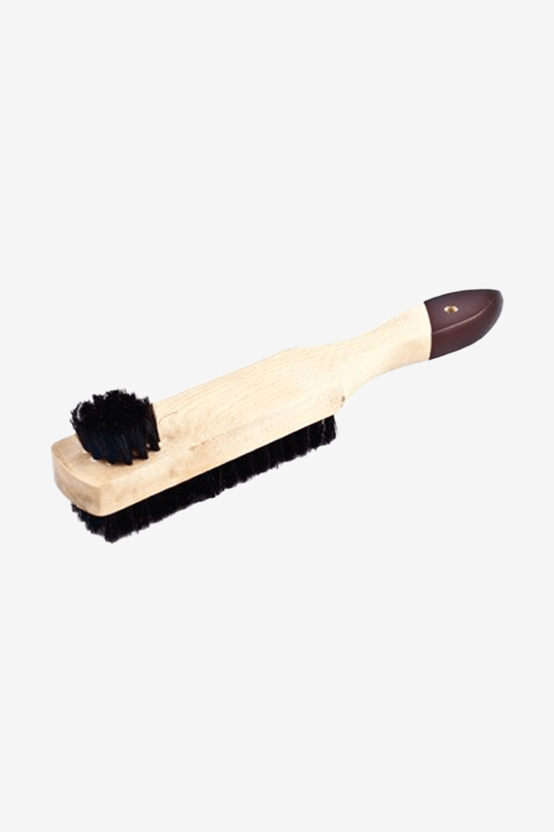 Fantastyczna szczotka do butów wykonana z drewna z naturalnym włosiem. Jednostronna, z wygodnym uchwytem. Naturalne włosie jest czarne, odpowiednie do ciemnej i neutralnej pasty do butów.