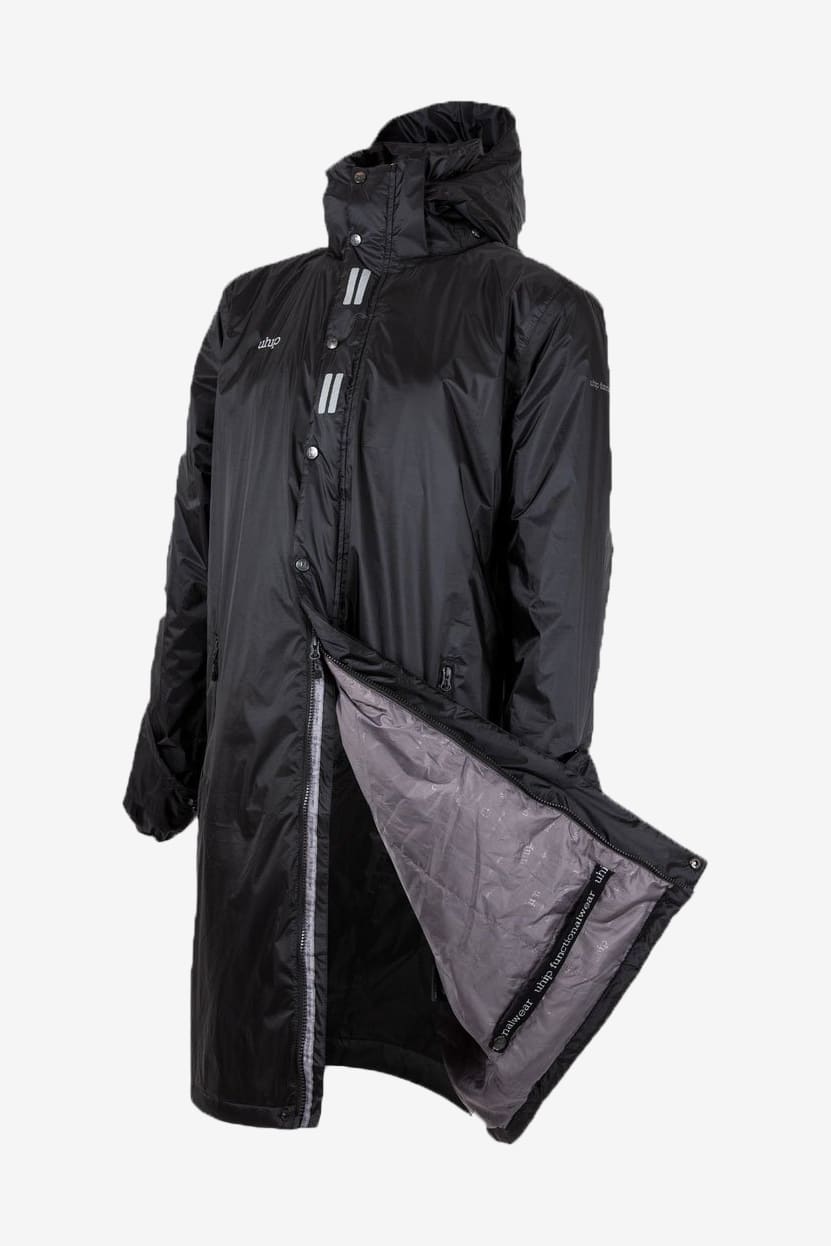 • Elastyczne paski na nogi Uhip z napami po wewnętrznej stronie, które utrzymują płaszcz na miejscu