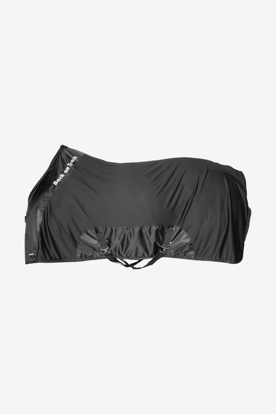 Linia grzbietu derki jest anatomicznie wyprofilowana, a przy klatce piersiowej znajdują się specjalne fałdy na łopatkach dla najlepszego dopasowania i swobody ruchów konia. W okolicy kłębu znajduje się podszycie z tkaniny typu teddy, które zapobiega obtarciom. Podwójne zapięcia na piersi oraz pasy krzyżowe pod brzuchem. D-ringi do zamocowania pasa na ogon lub pasków na nogi oraz pierścienie do przypięcia części szyjnej. Elegancki czarny kolor i złoty haftowany logotyp Back on Track z przodu.