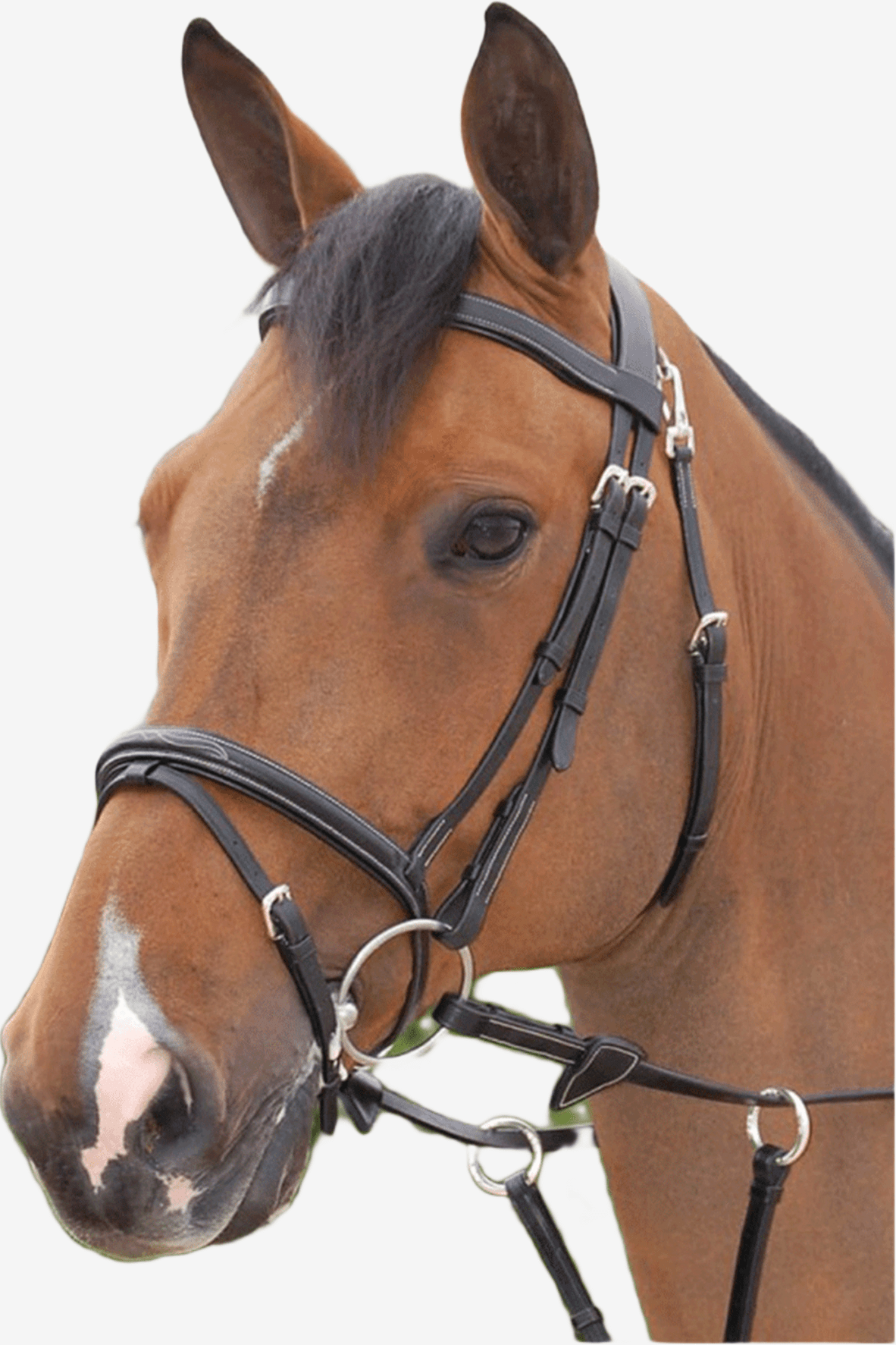 Ogłowie z kombinowanym nachrapnikiem od Dyón – Working Collection. Wykonane ze skóry bawołu wodnego z białym ozdobnym przeszyciem i szybkozłączką na pasku policzkowym. Stylowe grawerowane klamry ze stali nierdzewnej. Srebrne klamry.
