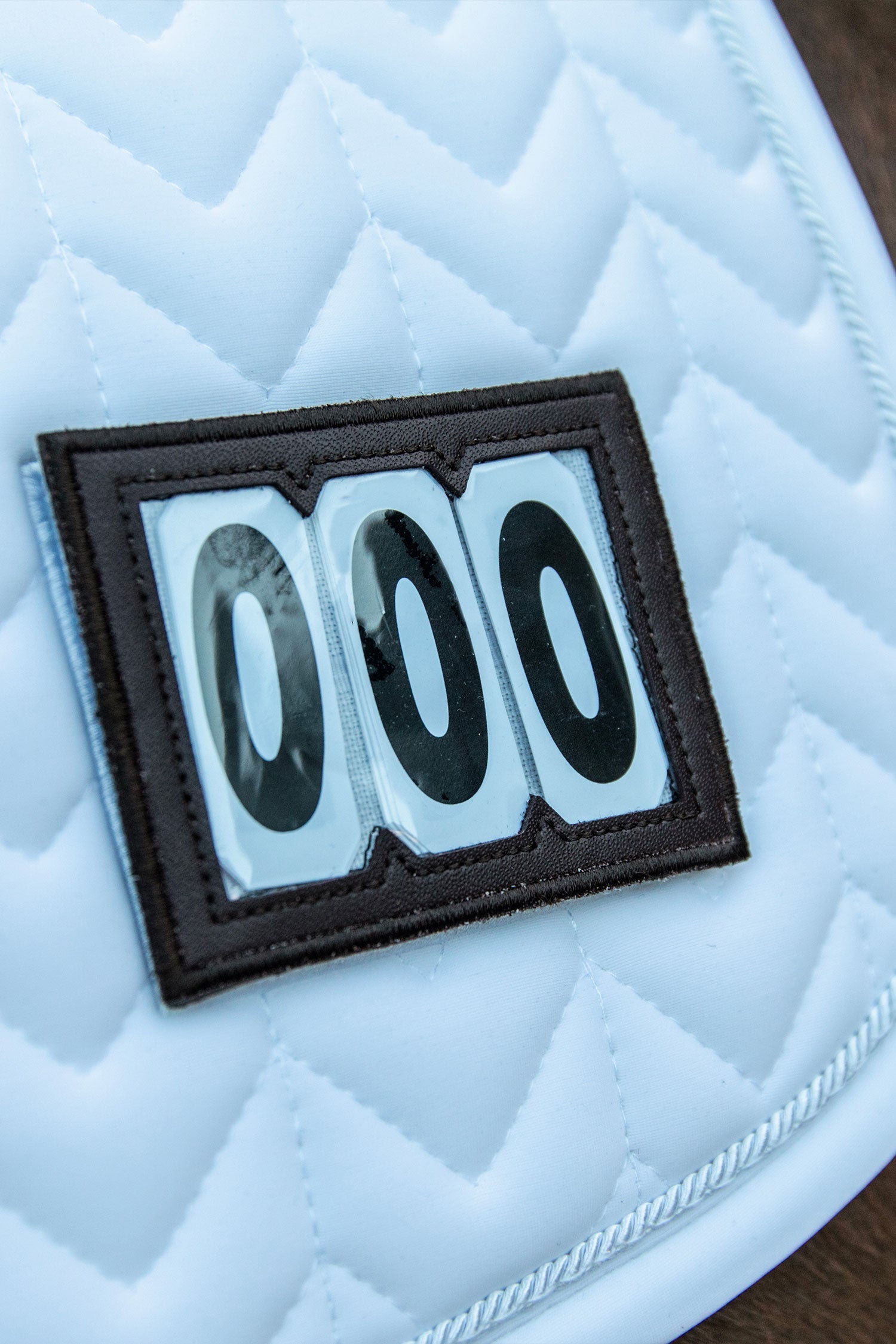 Detta schabrak har en subtil läderlogo, samtidigt som det ingår en nummerlapp som enkelt fästs med kardborre.