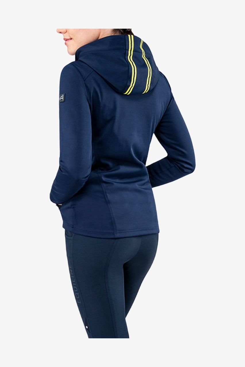 En sportig och figursydd softshell jacka i mörkt marinblå från Equiline.
