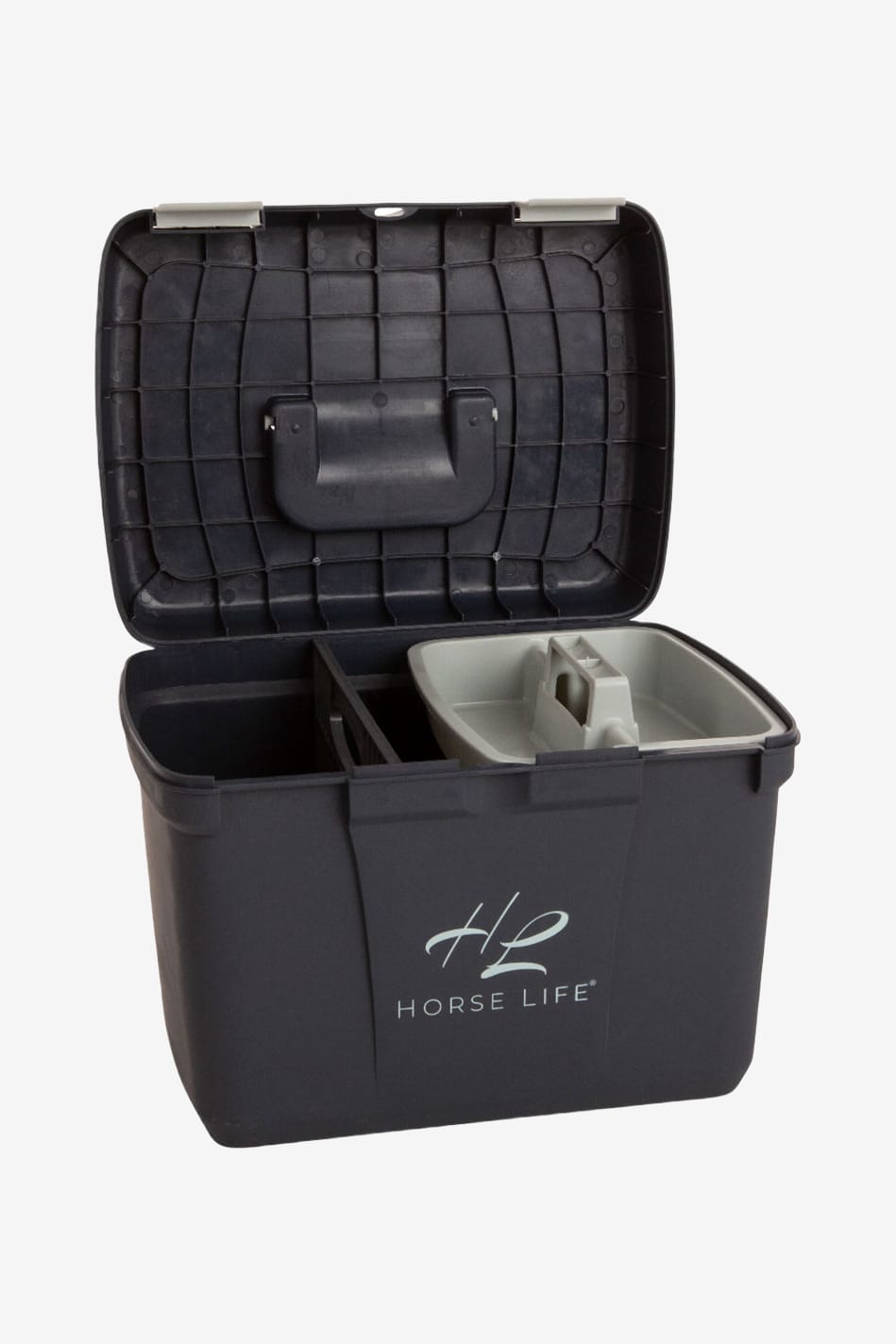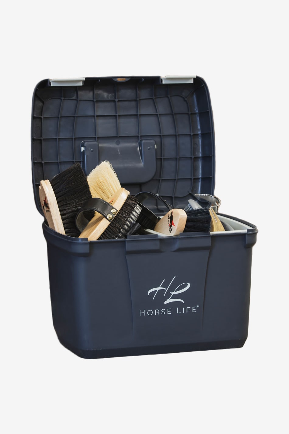 Skrzynka na szczotki wykonana z wytrzymałego materiału z uchwytem do przenoszenia. Zamknięta skrzynka może służyć jako stołek. Praktyczna dzięki kilku przegródkom.