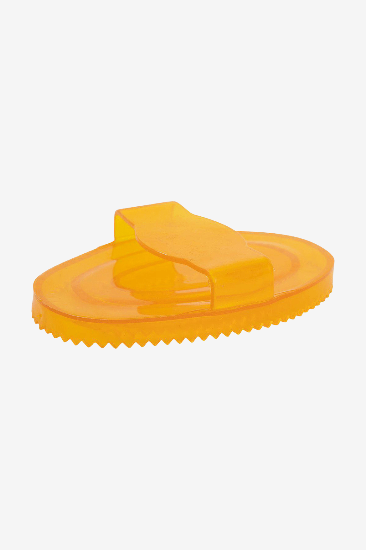 Dobry gumowy skrobak w jasnym, przezroczystym kolorze. Świetny do czyszczenia lub usuwania błota. Sprawdza się także do masażu konia. Może również pomóc koniowi pozbyć się sierści podczas linienia.