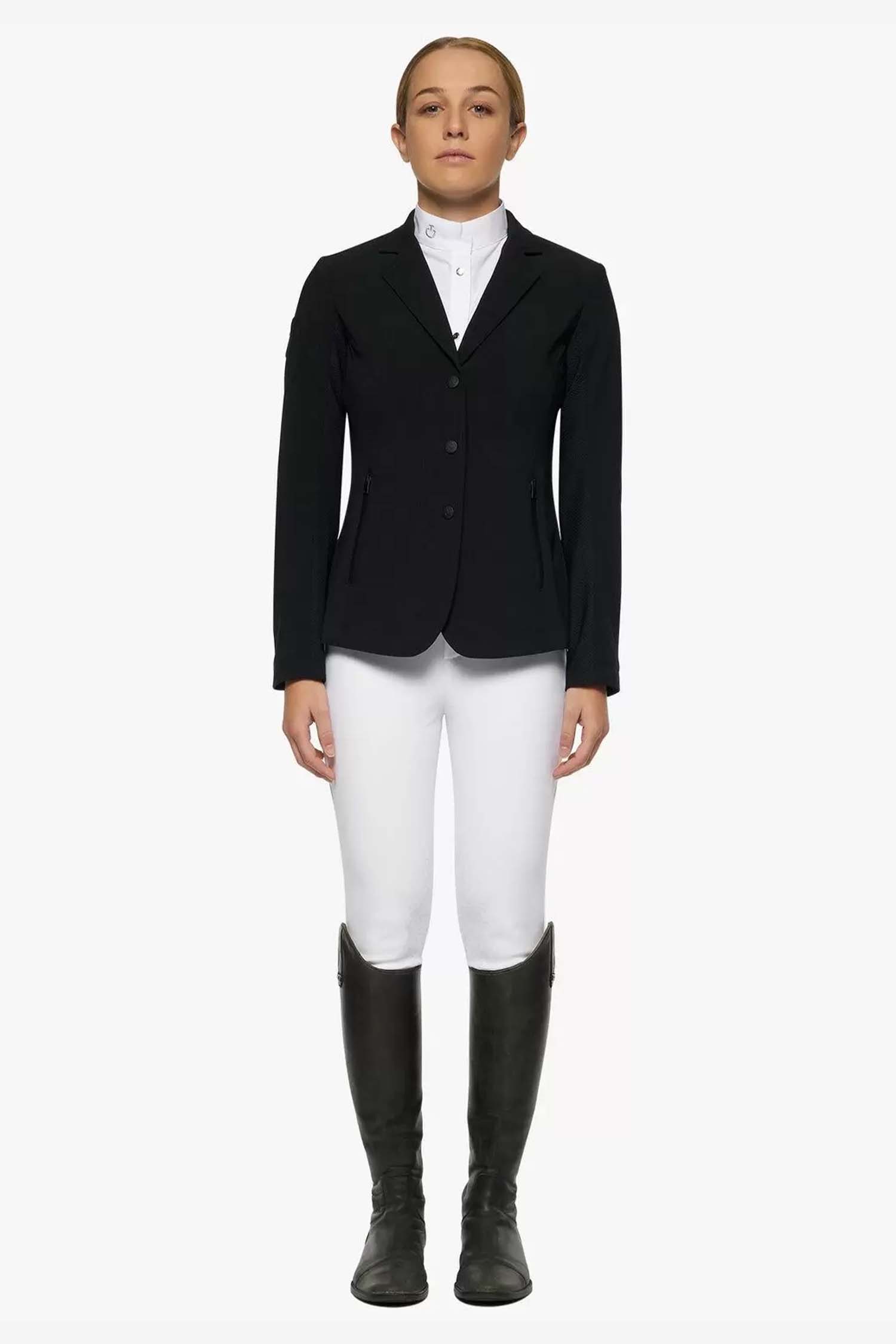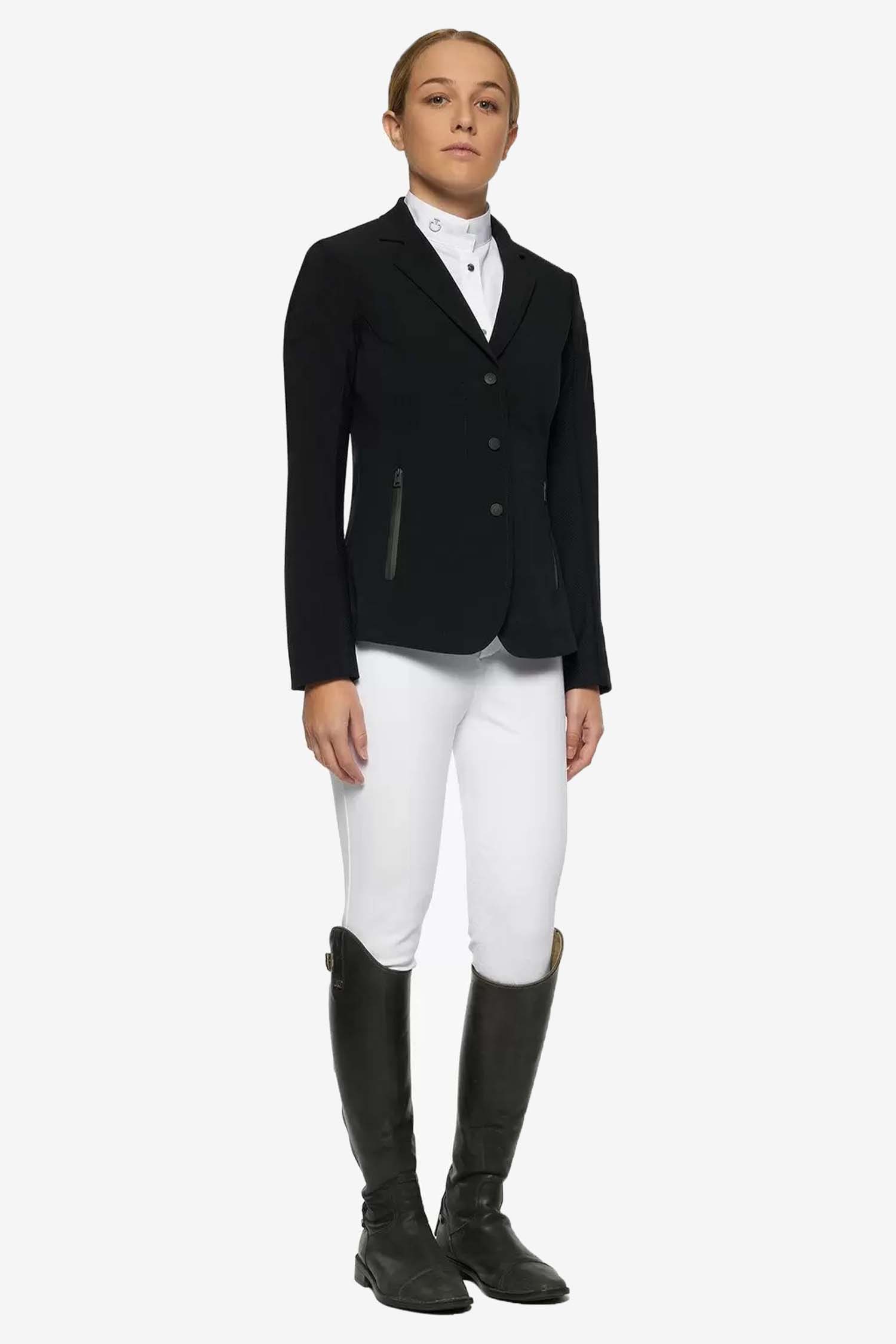 Stylowa marynarka konkursowa dla dzieci od Cavalleria Toscana. Wykonana z materiału bi-stretch, zapinana na proste guziki, z przednimi kieszeniami zapinanymi na zamek.