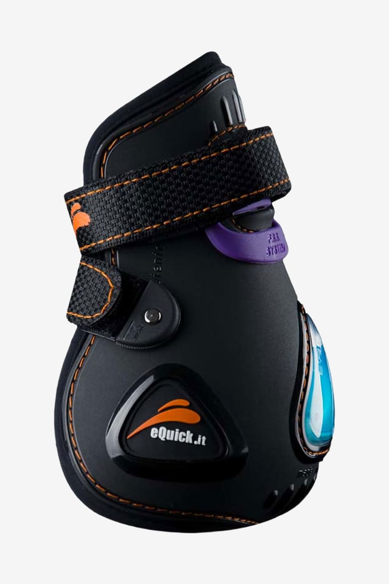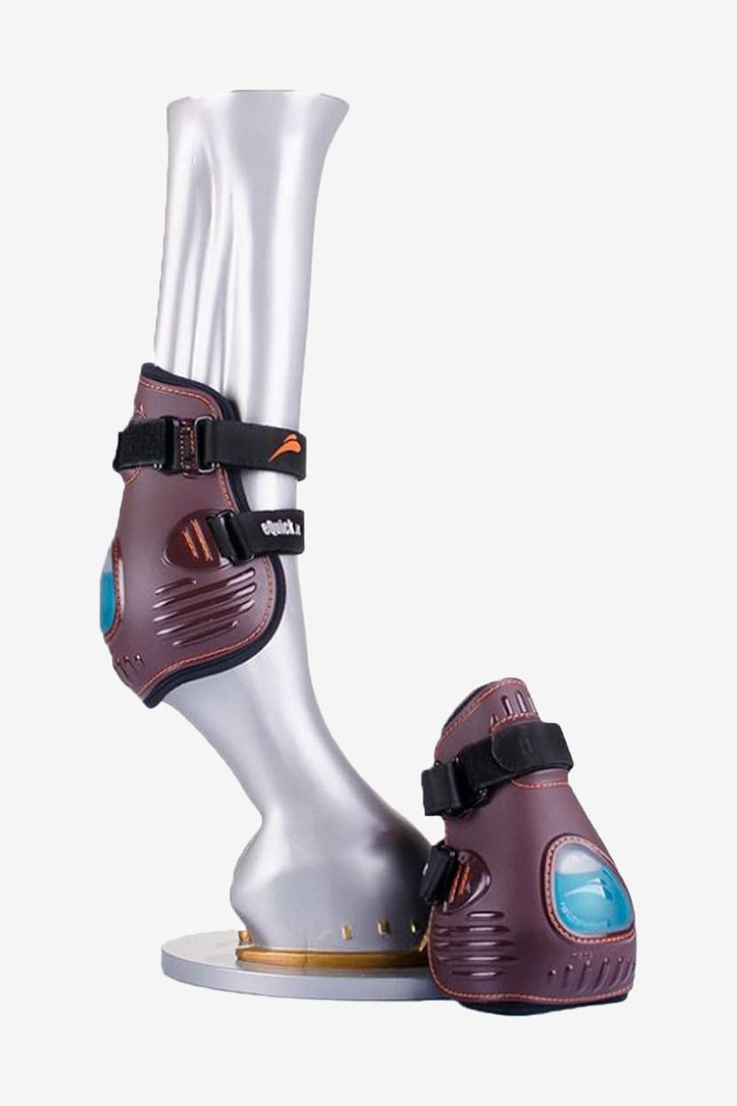 Ett innovativt bakbensskydd att använda enbart av rutinerade ryttare. Anatomiskt formad för att skydda senan och kotan från trauma. Insida av neopren och utsida av plast gör att skydden är lätta att tvätta och hålla rena. Skydden är framtagna för att hjälpa hästen med bakbenstekniken. Exklusiv eFluidgel technologi som kraftigt reducerar trycket/slaget mot hästens ben tack vare luft och gel som absorberar stöten vid en smäll.