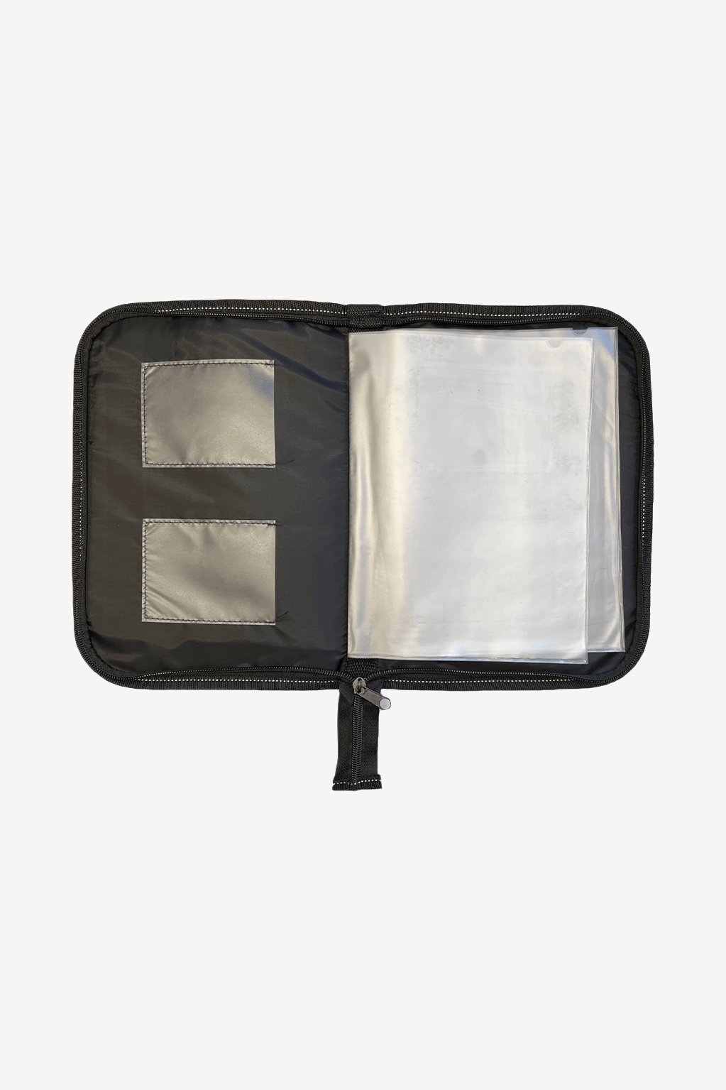 Wytrzymała okładka, która chroni ważne dokumenty. Długi zamek błyskawiczny umożliwia całkowite otwarcie na płasko. Dwie kieszonki na przykład na zieloną kartę. Cztery plastikowe kieszonki na inne dokumenty.