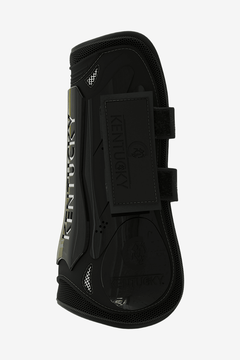 Ochrona od Kentucky. Wykonane z wytrzymałej skorupy TPU z wieloma otworami wentylacyjnymi dla optymalnego komfortu konia. W miejscu zgięcia konia znajduje się miękka naturalna guma, aby zapobiec tarciu. Wewnętrzna część ochraniaczy jest wzmocniona dodatkową warstwą TPU dla najlepszej amortyzacji. Idealne do codziennych treningów w domu. Łatwe do zamknięcia dzięki podwójnym zapięciom na rzepy.