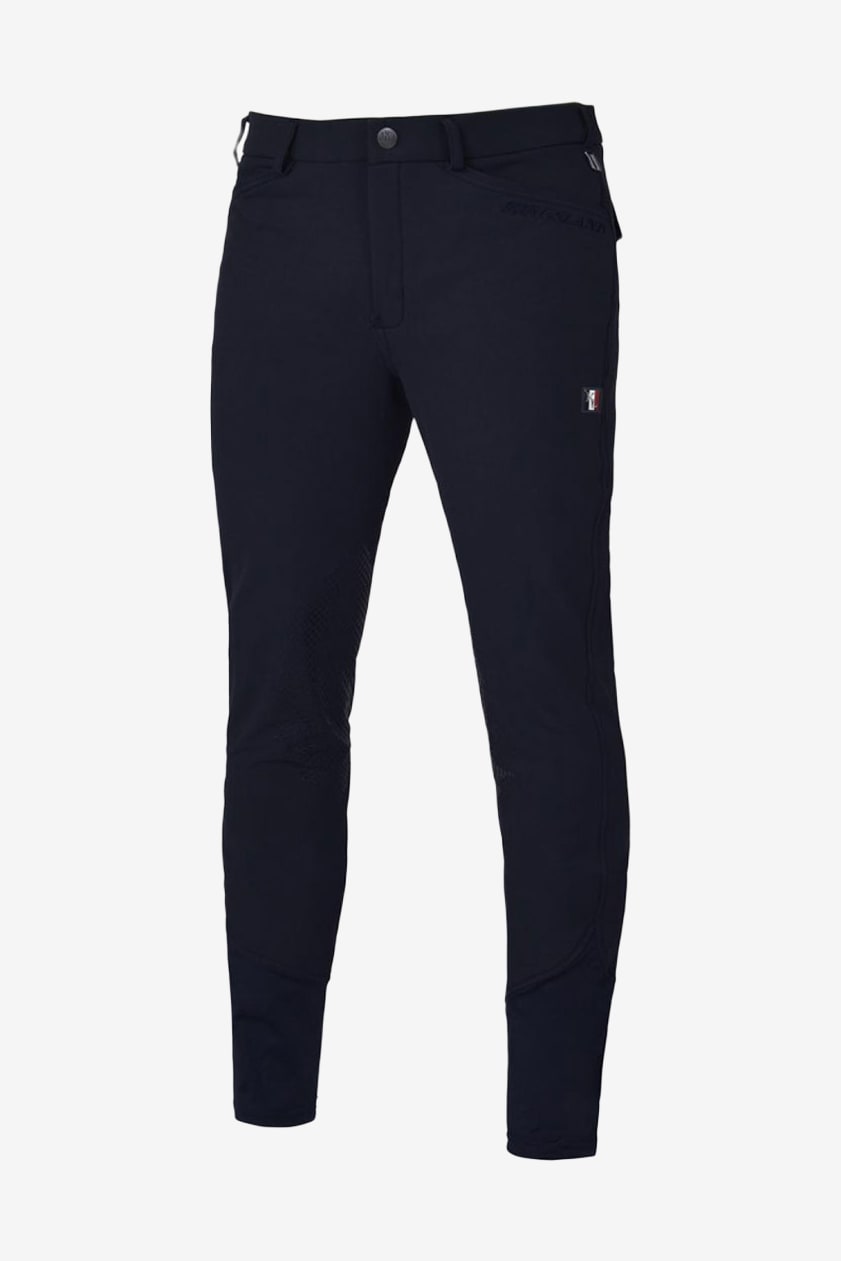 Wykonane z 4-kierunkowego stretchu dla optymalnego komfortu. Bryczesy są oddychające oraz odporne na kurz i wodę. Dolna część łydki wykonana jest z lycry dla lepszego komfortu. Bryczesy posiadają również lamówkę wzdłuż krawędzi kieszeni. Z haftem pod przednią kieszenią i logo firmy na lewym udzie. Wykonane w 93% z poliamidu i 7% elastanu.