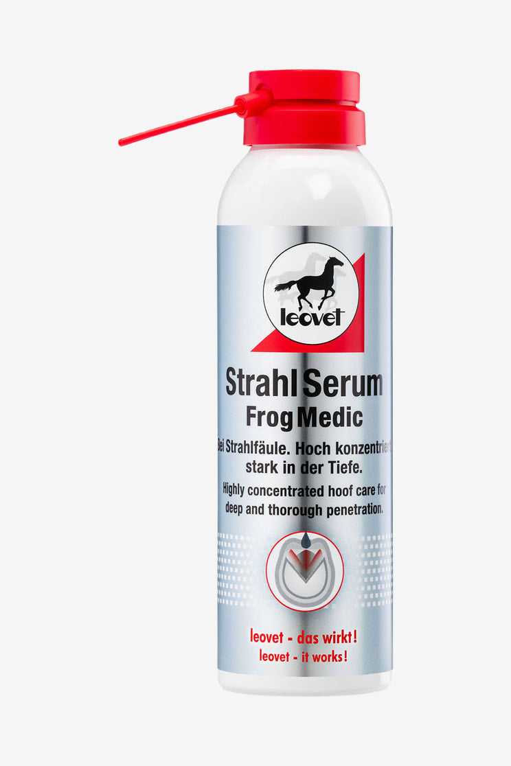 Oczyść wnętrze kopyta, a następnie nałóż Frogmedic bezpośrednio na strzałkę i podeszwę. Powtarzaj 2 razy dziennie przy silnym gniciu, następnie w razie potrzeby około 2 razy w tygodniu.