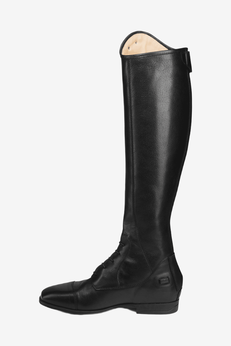 Parlanti Dallas Pro to stylowe i eleganckie oficerki włoskiej marki premium Parlanti. Dzięki doskonałemu dopasowaniu, miękkiej skórze cielęcej i stabilnej podeszwie, te oficerki są idealne do treningu i zawodów. Wewnętrzna strona łydki została zastąpiona bardziej wytrzymałą skórą bawolą, która jest odporniejsza i lepiej znosi zużycie niż wnętrze ze skóry cielęcej. Oficerki prezentują się elegancko i ekskluzywnie dzięki prostym detalom i starannie wykonanej skórze. Bardzo ładne oficerki z zamkiem na całej długości z tyłu oraz elastycznym panelem wzdłuż zamka, co zapewnia wysoki komfort dla jeźdźca.
