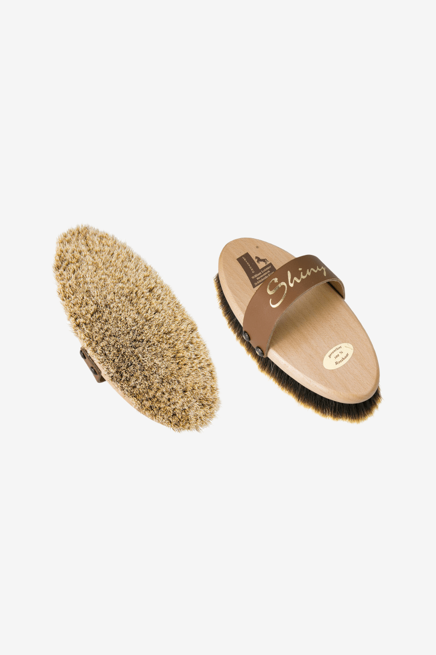 Szczotka do czyszczenia wykonana z naturalnego drewna bukowego z włosiem w 100% z końskiego włosia o jasnych końcówkach. Do tej szczotki wybrano najwyższej jakości końskie włosie z miękkimi końcówkami, aby uzyskać idealne wykończenie i nadać sierści piękny połysk. Użycie naturalnych materiałów sprawia, że sierść pozostaje miękka i delikatna oraz ma działanie nawilżające, nie powodując przy tym elektryzowania się. Włosie końskie jest gęsto osadzone.