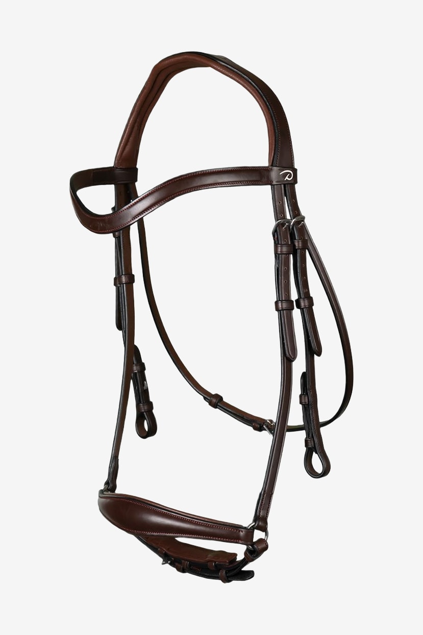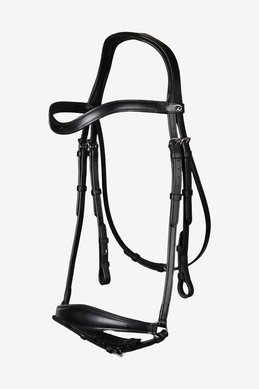 Dy'on Drop Noseband Trense fra Dressage Collection Flat Leather er en eksklusiv trense, der kombinerer præcision, komfort og elegance. Med sit anatomiske design og klassiske remontnæserem giver trensen rytteren bedre kontrol, samtidig med at hesten får maksimal komfort – perfekt til både dressurtræning og konkurrence.