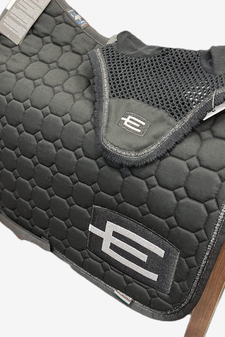 Hoppschabrak i svart med en tunn silverglittrig passpoal 3 mm och den populära E-loggan i svart-silver på vänster sidan.
