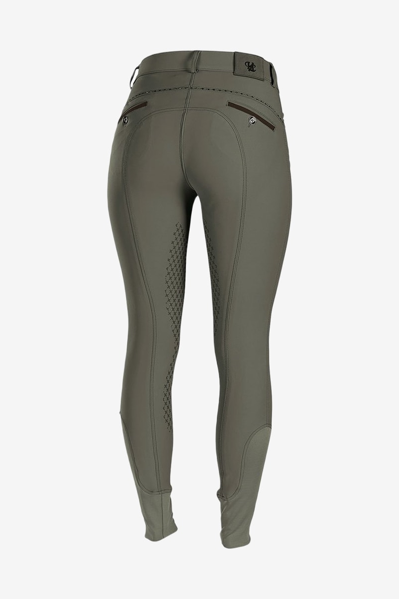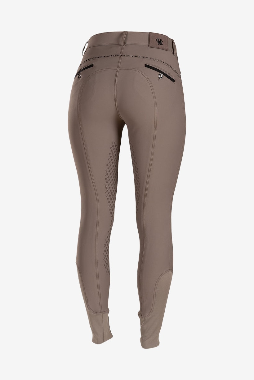 Ridebukser til børn fremstillet i super-x nylon/lycra, et kraftigt funktionelt materiale, der er vandafvisende og meget slidstærkt med firevejsstretch. Sadeludskæring med silikone på indersiden af benet. Skrå forlommer og skjulte baglommer med knap. Clarinodetaljer og dekorsøm med sten. Benafslutning med lycra.