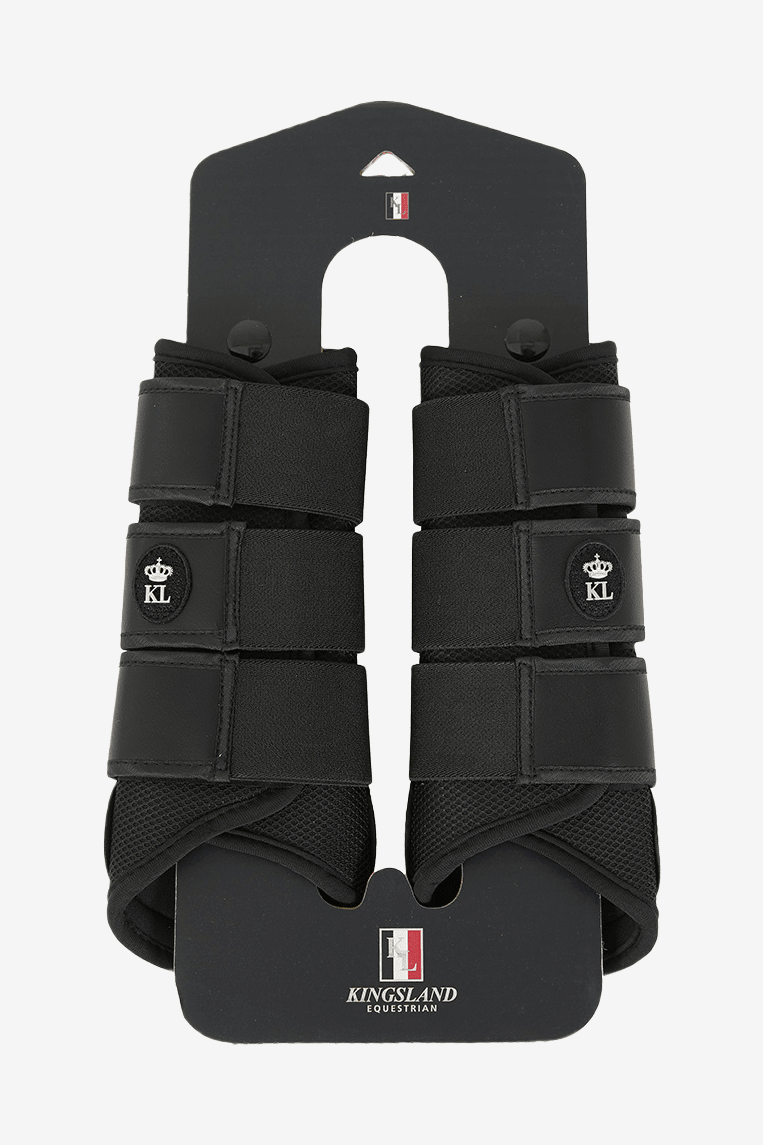 Gamacher fra Kingsland lavet af et glitrende mesh-materiale med læder på ydersiden og neopren på indersiden. Dekoreret med Kingslands logo.