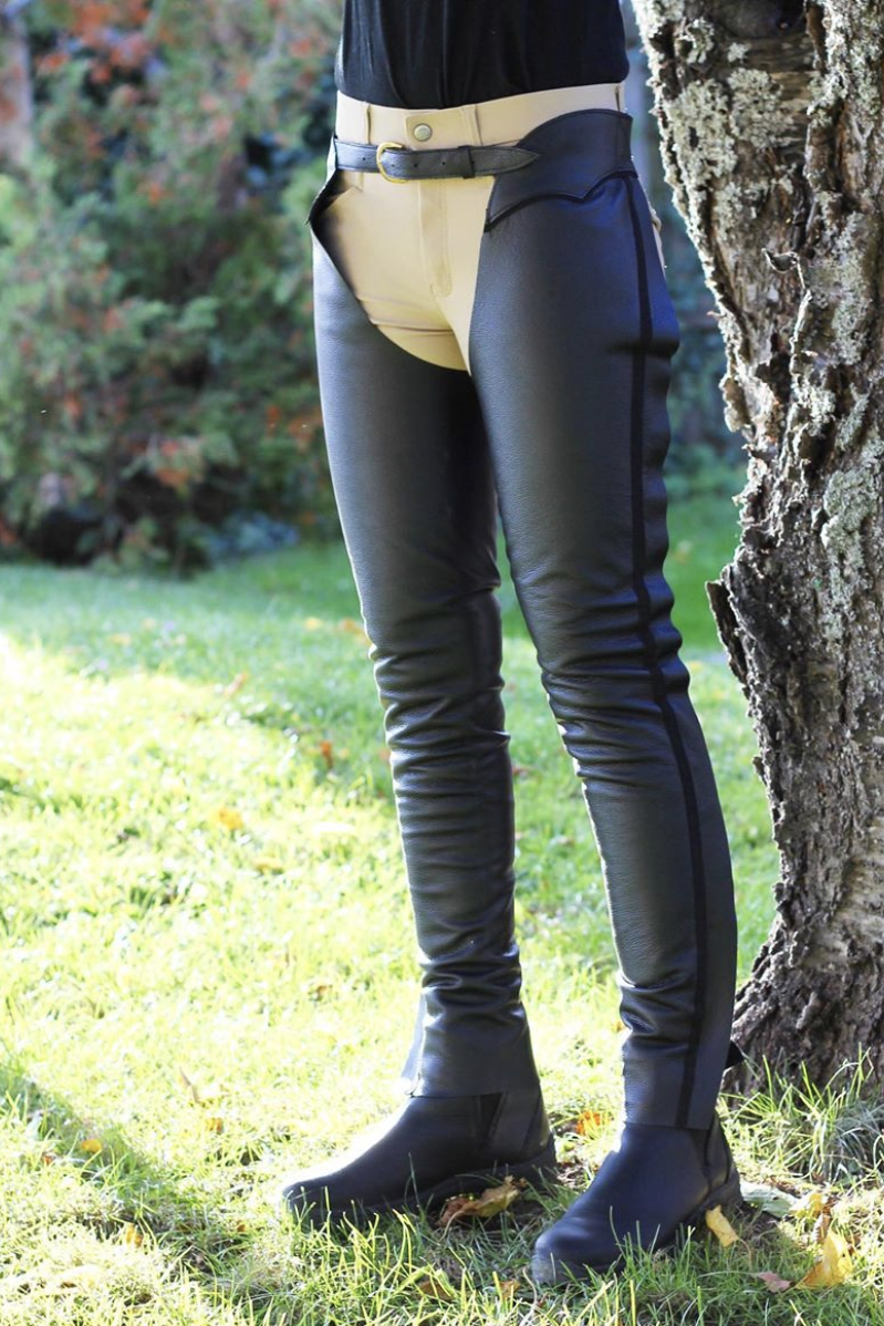 Hellange læderchaps i blødt læder fra Tib Horse. Læderpiping på ydersiden skjuler lynlåsen. Tætsiddende pasform med to justerbare spænder i taljen for god tilpasning. Slidstærke og holdbare med YKK lynlås. Behagelige at ride i og nemme at rengøre.