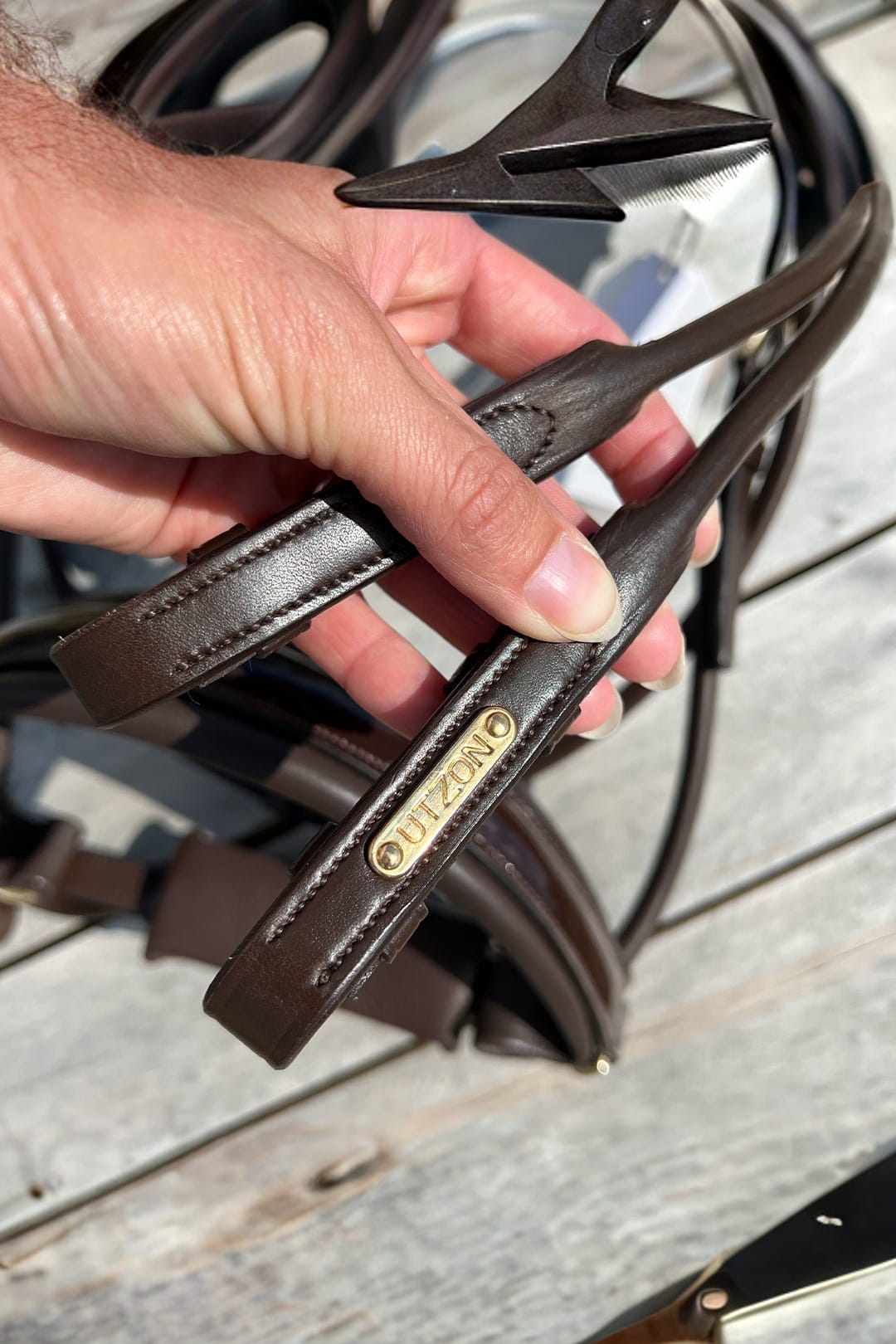 - Rullet pandebånd i læder medfølger. (Se billede nummer to).