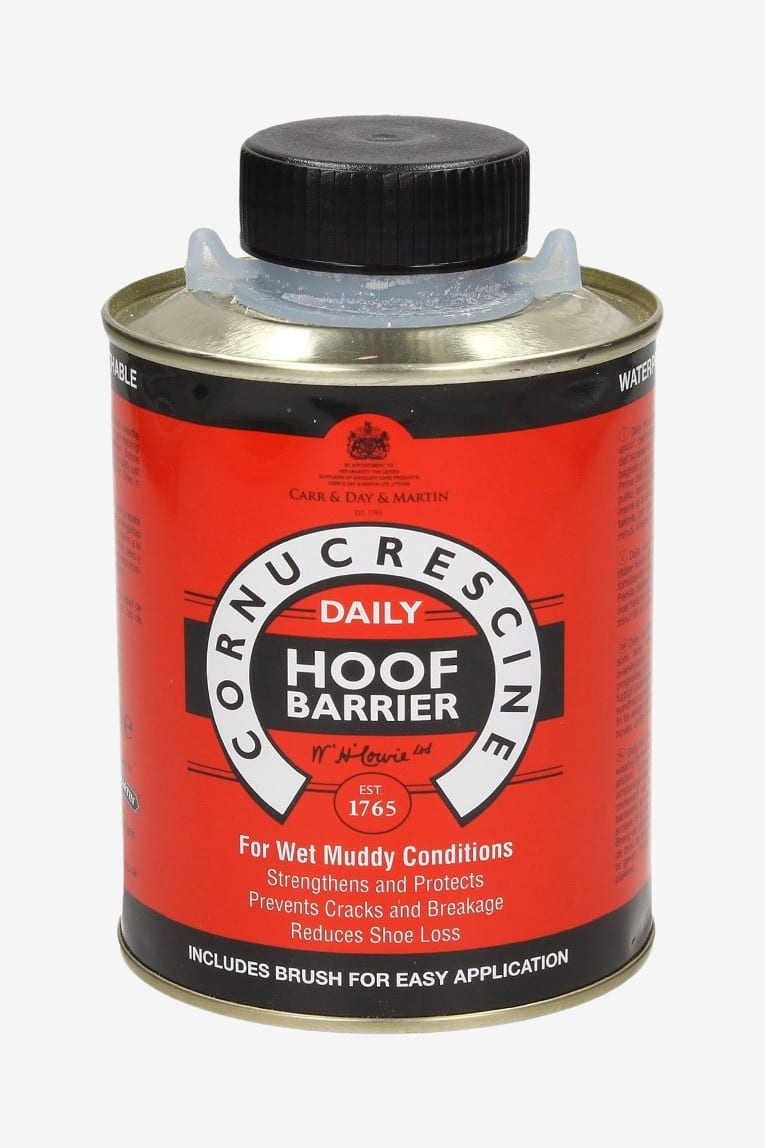 Daily Hoof Barrier från Carr & Day & Martin bygger upp ett "envägsskydd" som tillåter hoven att andas. Används främst i fuktiga och leriga miljöer eller vid långvarig stallvistelse för att skydda hästens hovar. Den avancerade formulan skapar en barriär mot att fukt tränger in i hoven.