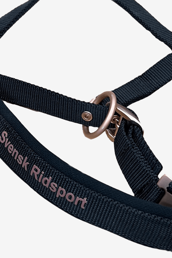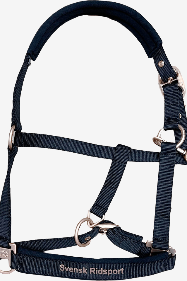 Härlig grimma från Eskadron med Svensk Ridsport logo. Grimman är vadderad över nacken och nosryggen för bästa komfort. Den är enkel att justera på vänstersidan över nacken för att få bästa passform och går även att justera runt nosen.