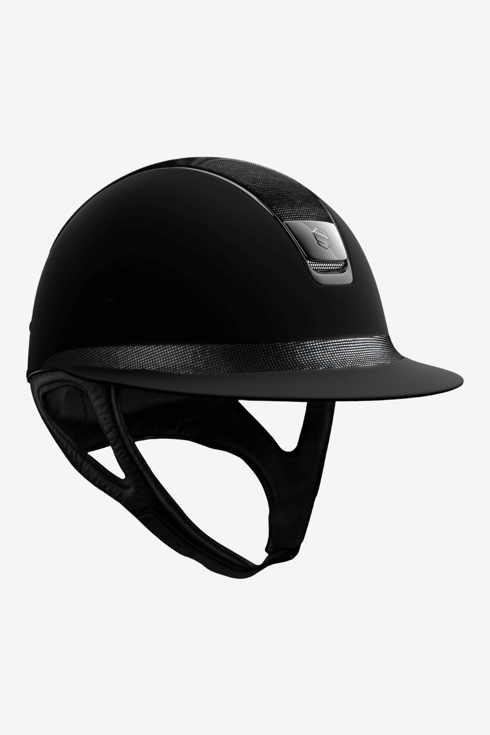 Denna hjälm är utrustad med DRESSAGE STRAP för att få plats med håruppsättningarna. Hjälmens nackskydd flyttas då upp 2,5cm.