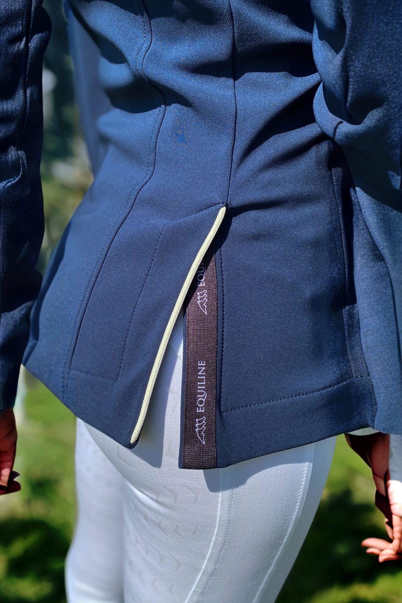 Supersnygg ridkavaj från Equiline i stretchigt och följsamt material. Materialet har bra andningsförmåga, transporterar bort fukten från kroppen samt extra luftgenomsläpp i armhålan. Sportig och figursydd modell samt snygg diskret logga på vänster ärm. Stretchigt material som ger komfort och snygg passform samt mer följsam och bekväm att rida i.