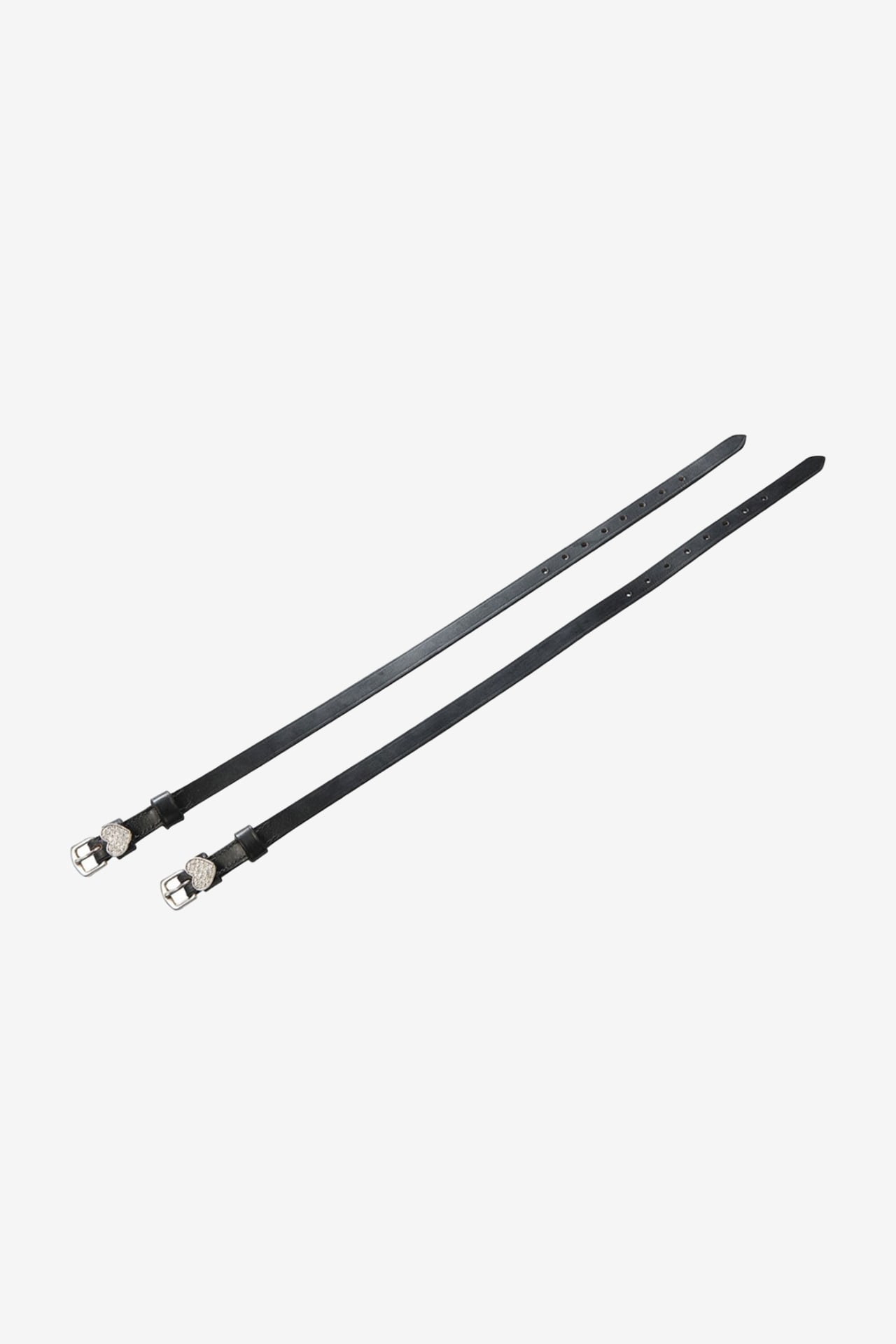 Sporremmar i slitstarkt buffaloskinn, detaljerad med sött hjärta i silver. Passar de allra flesta märken och modeller på sporrar. Säljes i par.