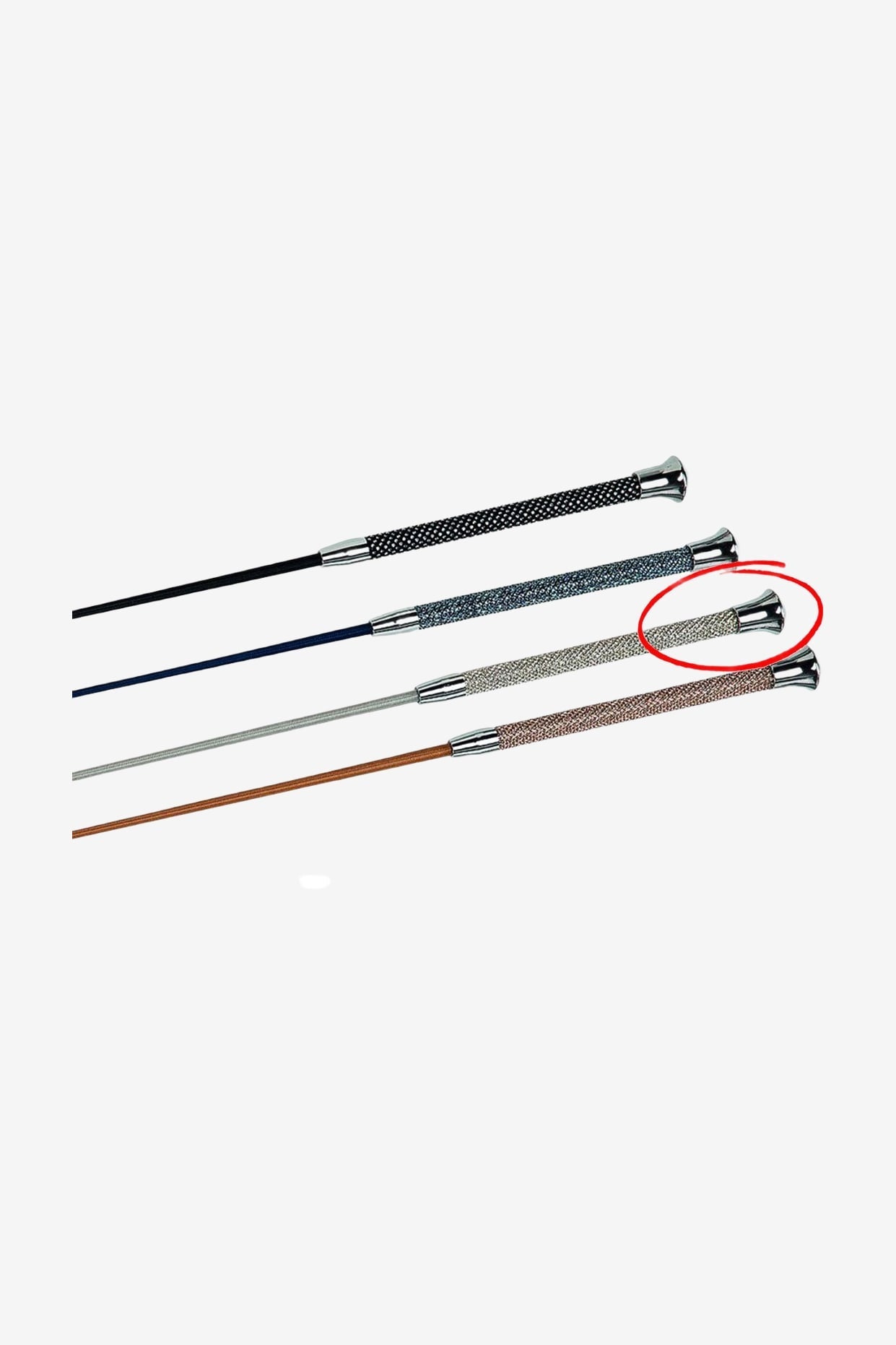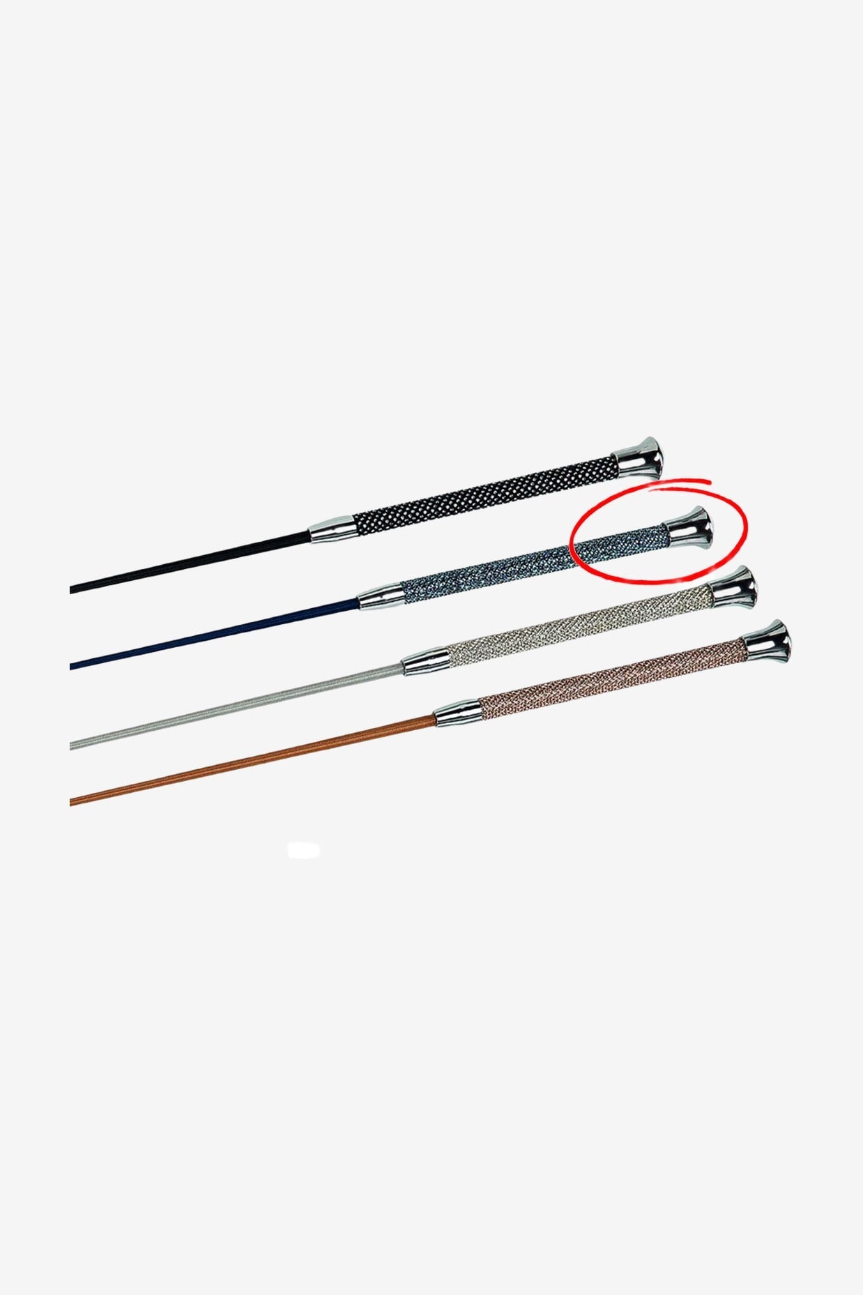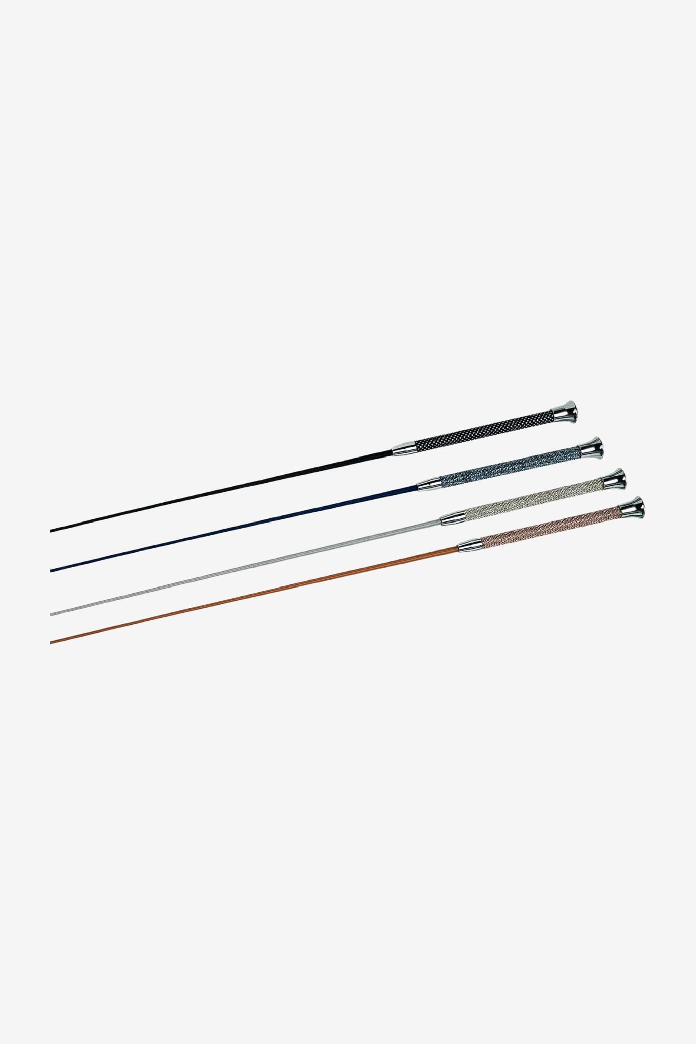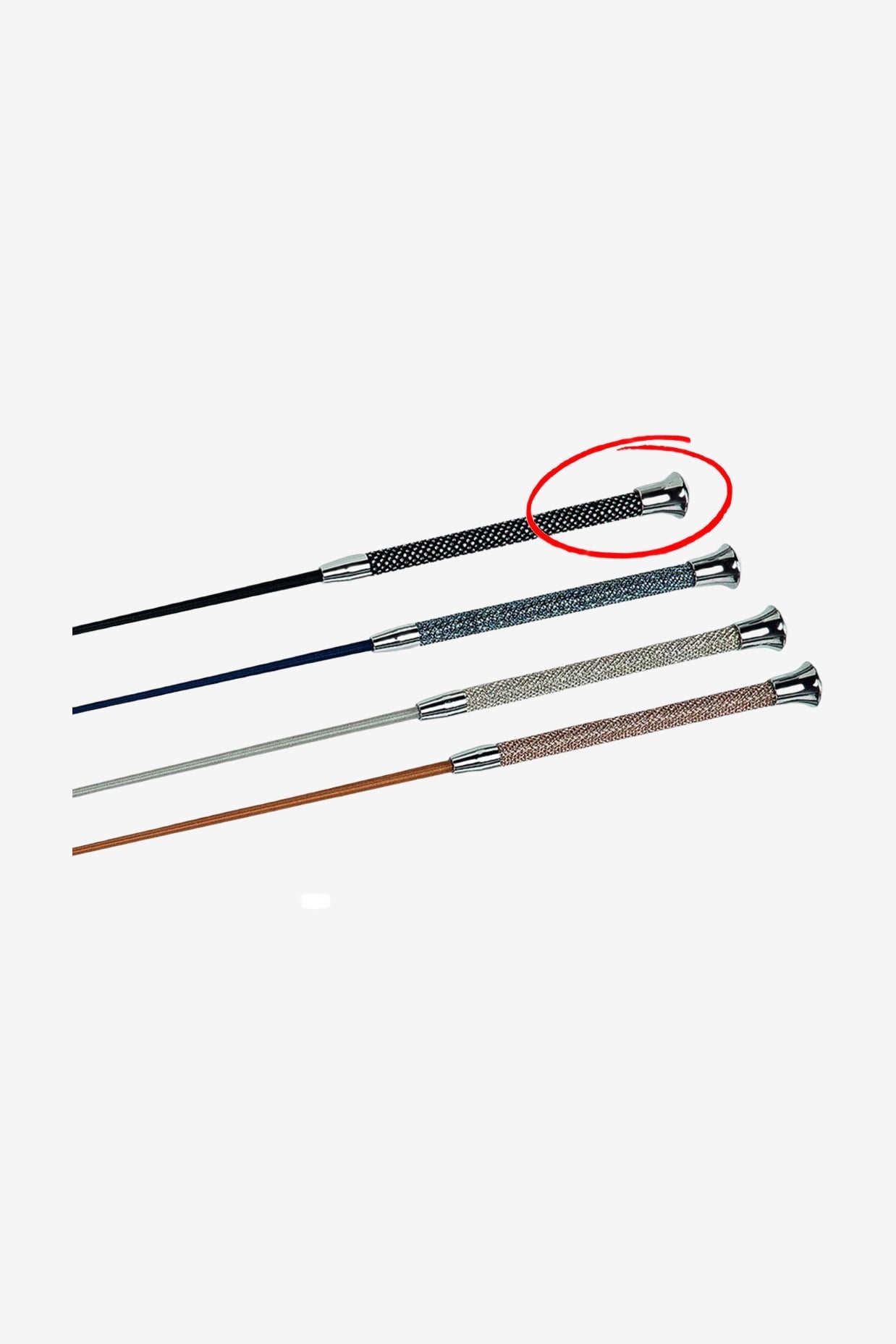 Exklusivt dressyrspö med överspunnen glasfiberkärna. Gnistrande stenar på handtaget och silverfärgad knopp.