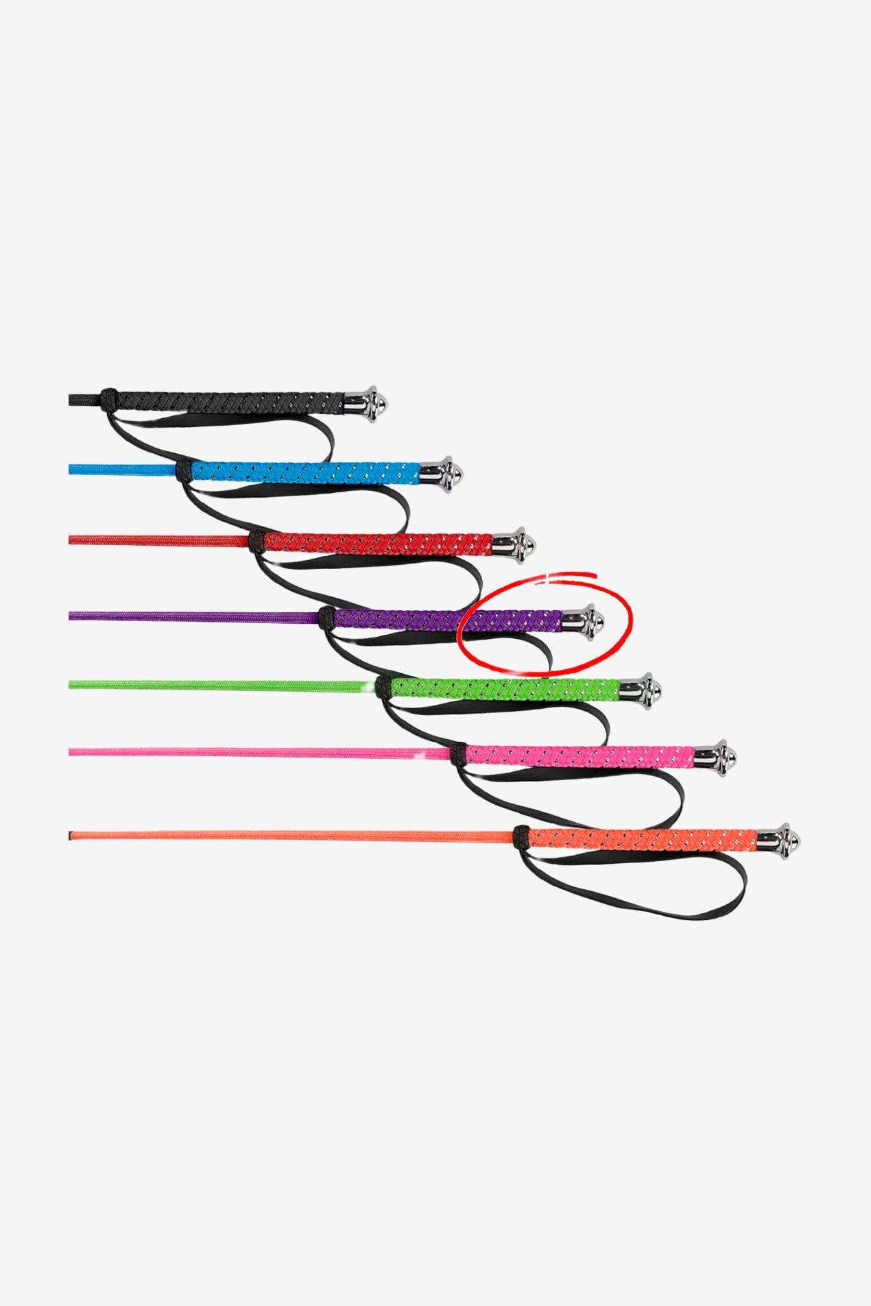 Nylonöverspunnen glasfiberkärna med handtag i nylon/silver och silverknopp.
