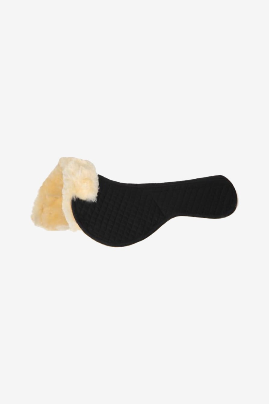 Korrektionspad Fram är en fårskinnspad med svart quiltad ovansida. Den har en naturfärgad fårskinnskant framtill och en kanal för att frigöra ryggraden. Fårskinnet fungerar som stötdämpning mot hästens rygg och höjer sadeln något.
