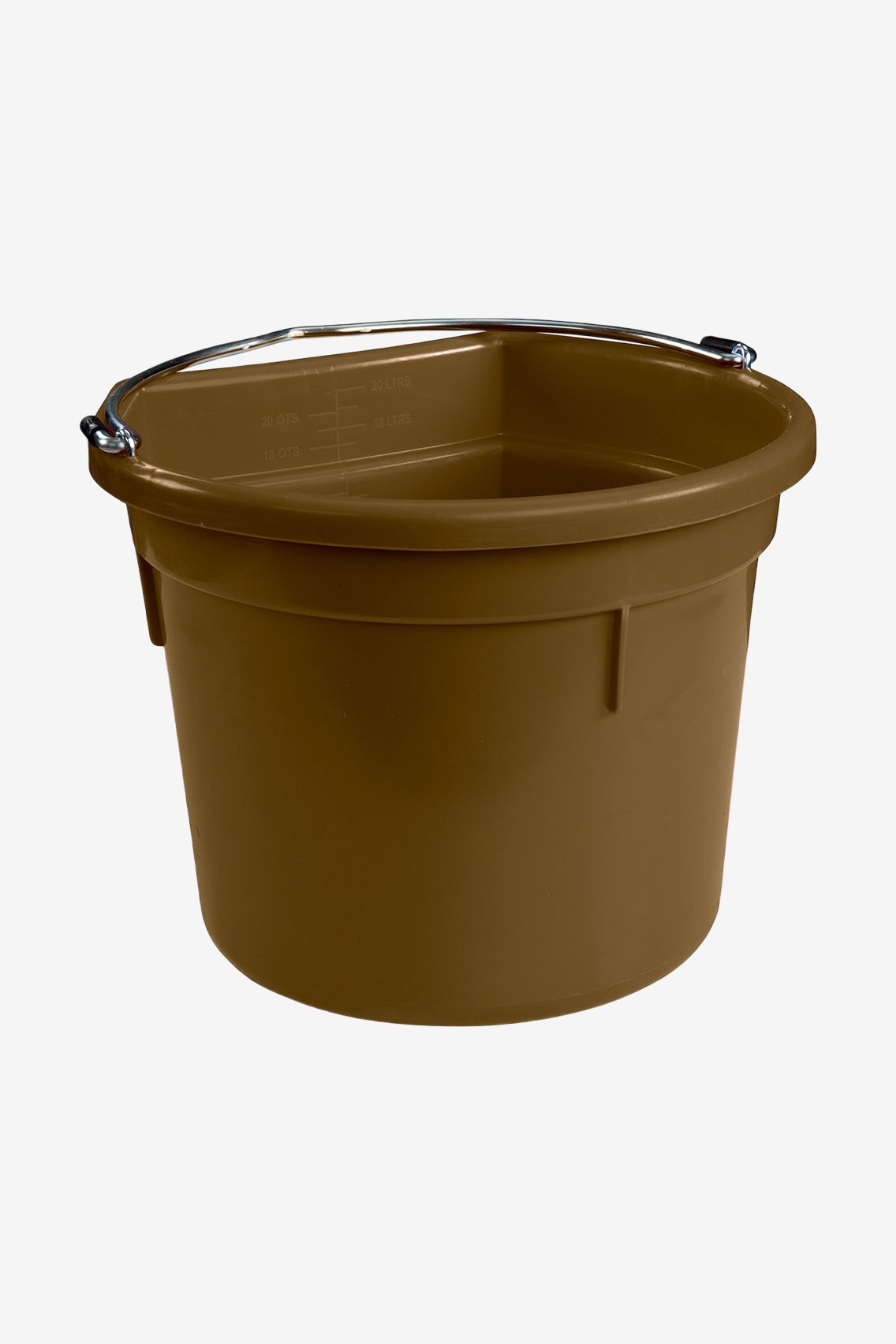 Hink i plast med flat baksida och handtag. Invändig gradering.