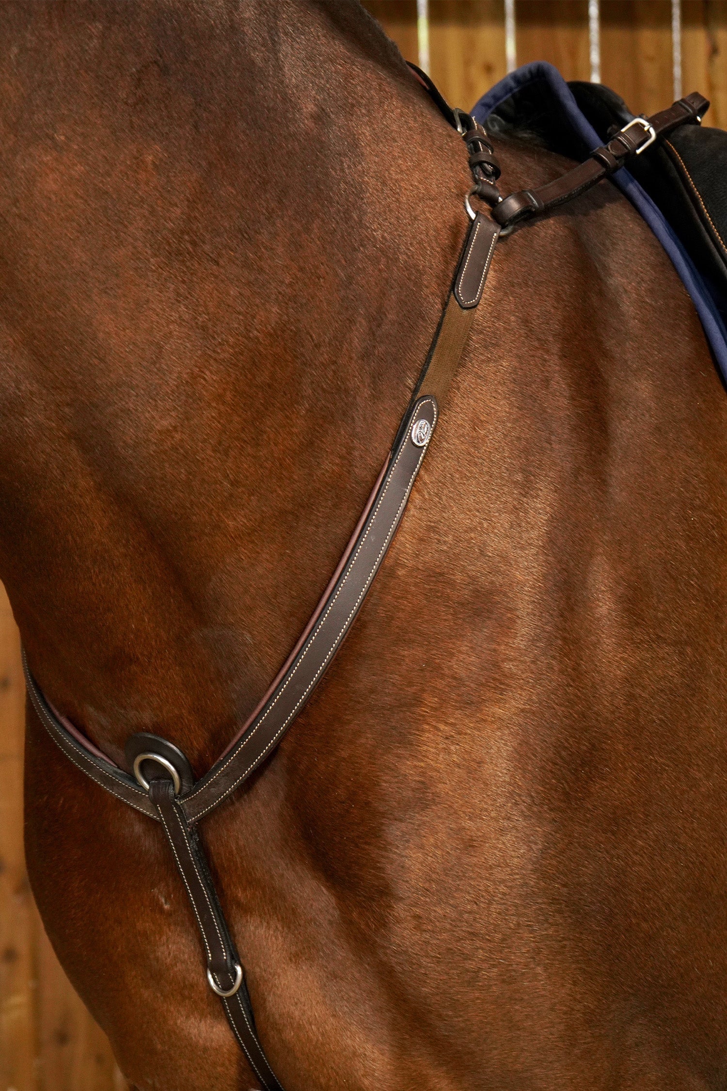 En smidig och fin brösta i buffaloläder som är enkel att justera över manken, samt vadderade remmar vid skulderbladet. Bröstan är försedd med silverspännen och har även fäste för kort martingal.