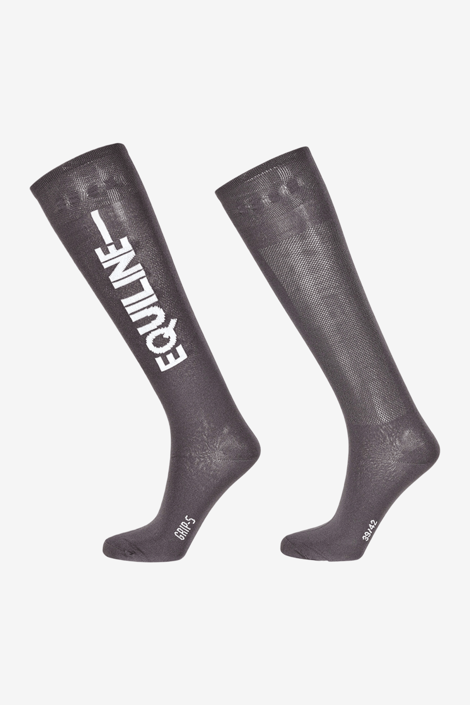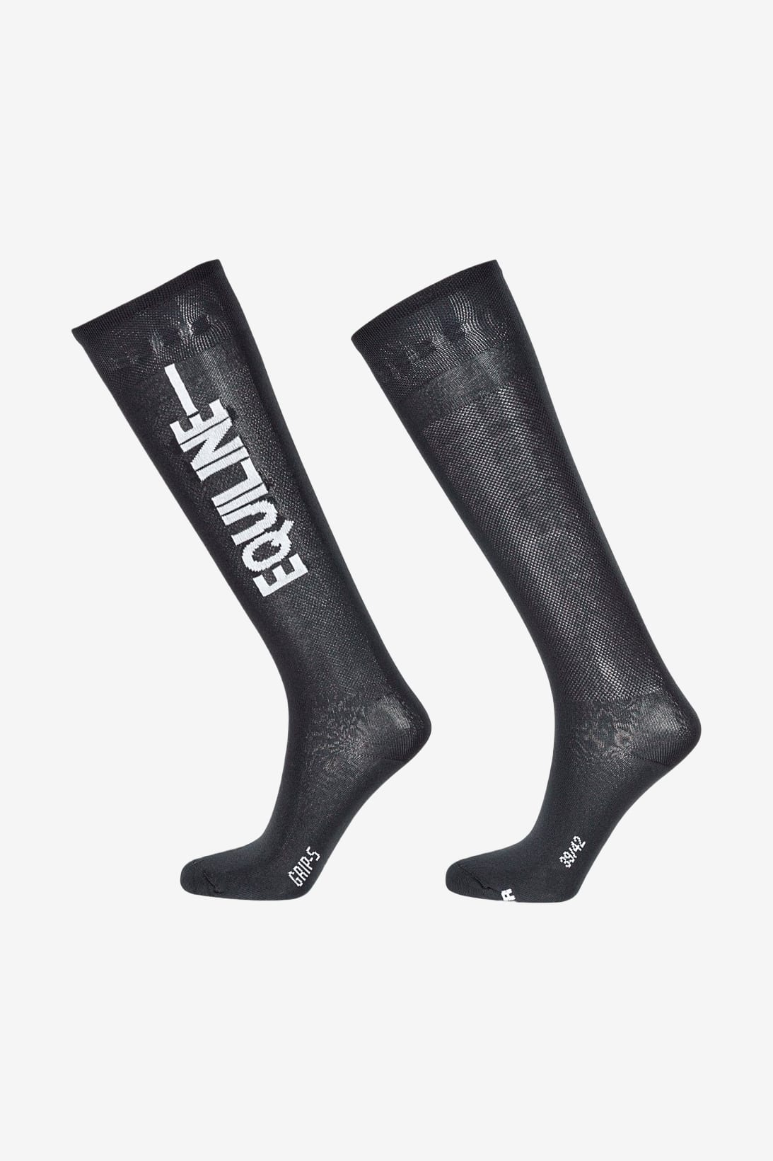 Strumpor i tekniskt material med grip system för perfekt passform på strumpan. Vit logga på utsida ben, extremt stretchig och hög andasfunktion.