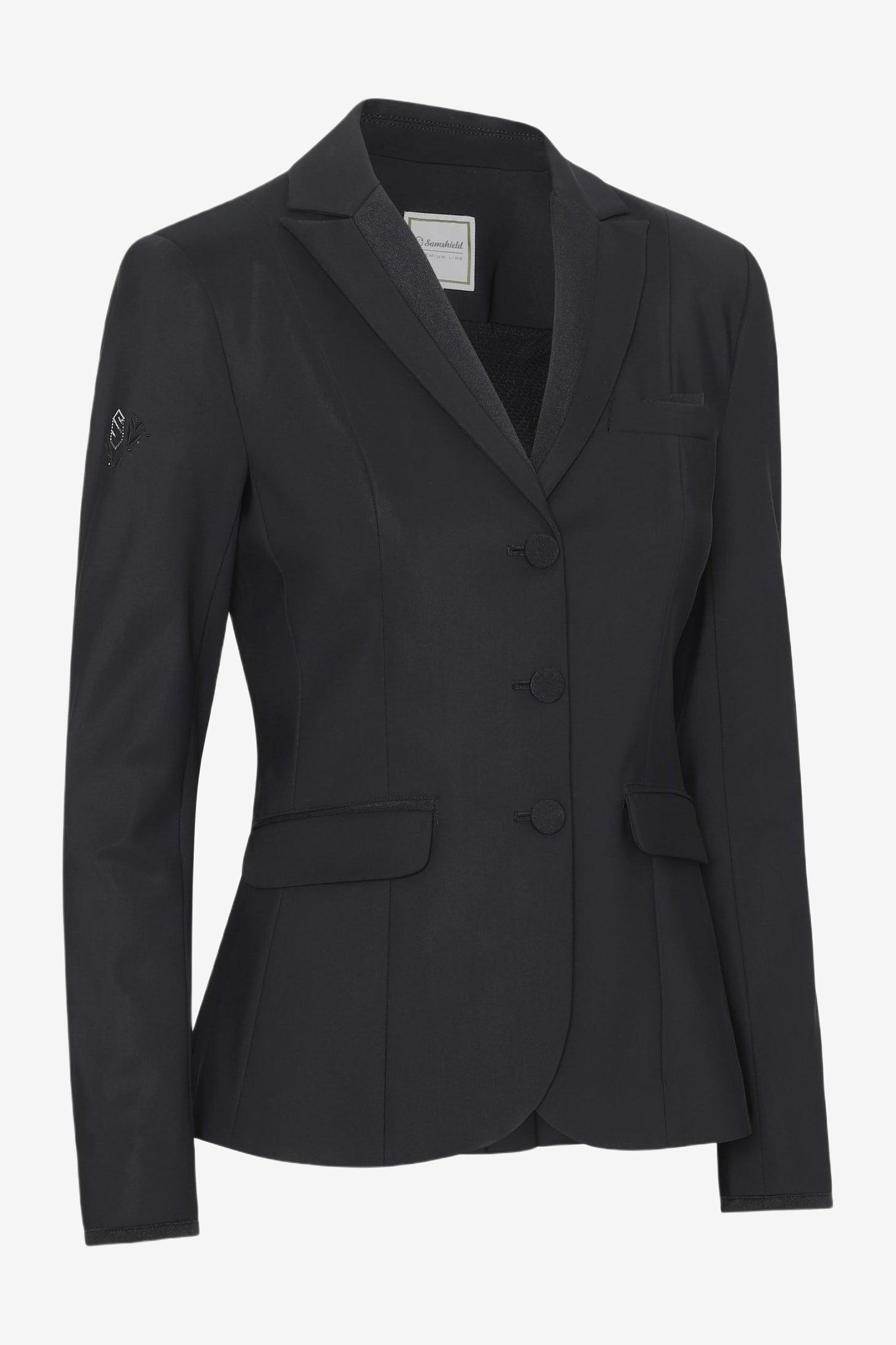 Louisa Matt Flower med sitt italienska material i hög stretch ger ultimat komfort för ryttaren, samt utmärkt andningsförmåga från det inre meshfodret som leder bort svett. Den dolda dragkedjan bakom knapparna ger en oklanderlig passform tillsammans med de eleganta vecken på baksidan för ultimat kroppskontur. Blomsterbroderiet på kavajen passar perfekt till hjälmalternativen som finns i vår samling. Avslutad vackert med Flower Embroidery Samshield-logotypen dekorerad med Swarovski®-kristaller på armen, satängdetaljer på ärmslut, fickor och krage.